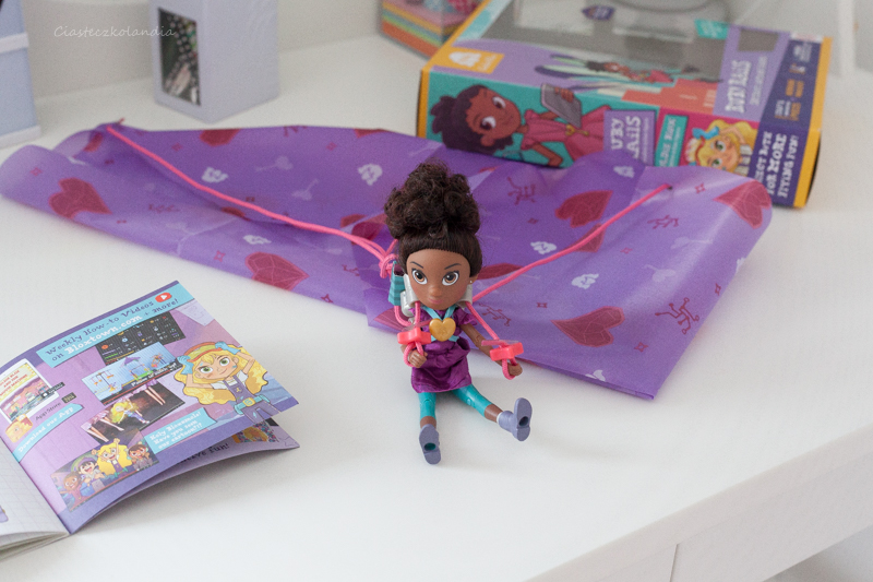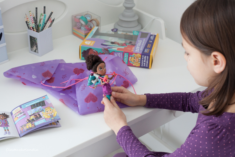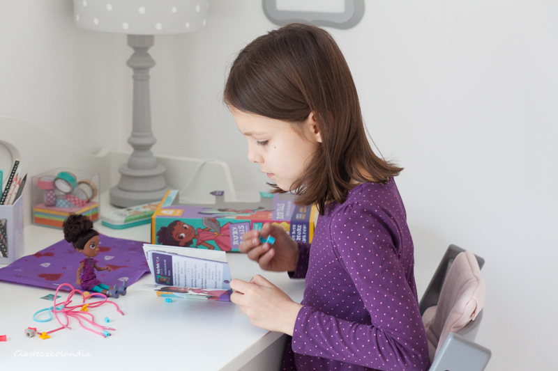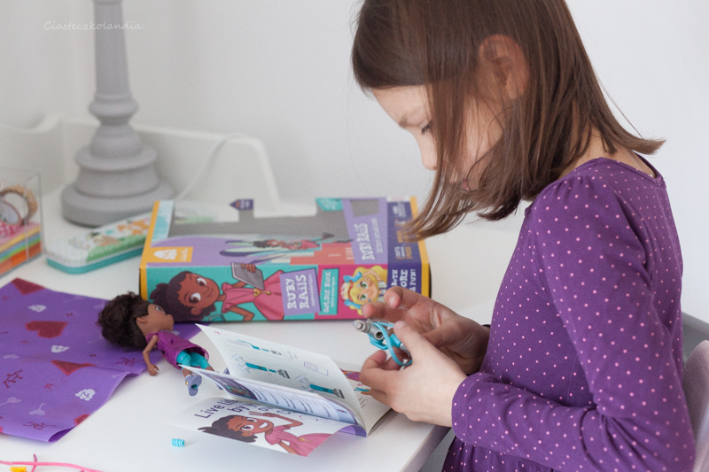 Nie mniej na widok lalki Ruby (która była nagrodą za piątki i szóstki z matematyki) bardzo się rozpromieniła. Z euforią przystąpiła do studiowania ulotki, budowania dla swojej lalki zestawu ze spadochronem. Szło jej bardzo dobrze, w jednym momencie (plecak) musiałyśmy szukać pomocy u taty, który pomógł jej na jednym z etapów.