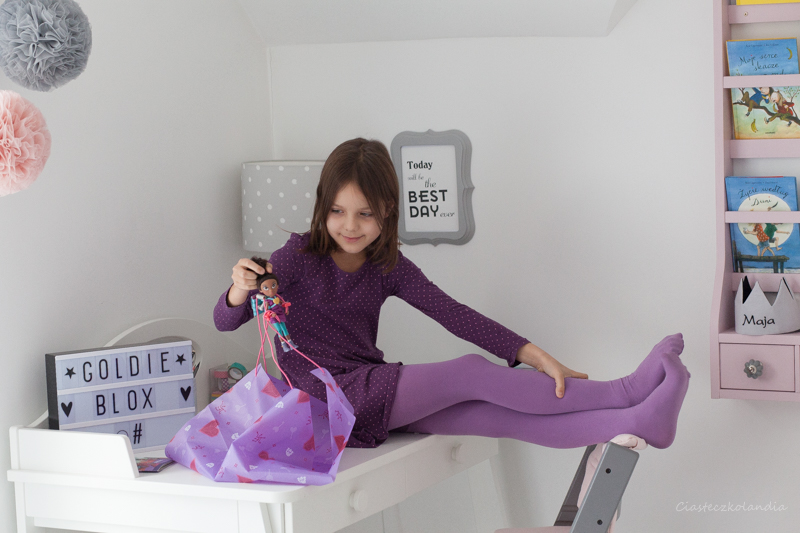 Maja nie wykazuje specjalnie zainteresowania klockami, majsterkowaniem, jej świat to pluszaki, kredki, książki, czasem lalki.