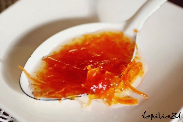 Latem mam ochotę wszystkie owoce, znajdujące się w polu mojego widzenia zamknąć pod jakąś (najchętniej słodką) postacią w słoiczku i schować głęboko, by móc cieszyć się nimi zimą. Zabrzmi to pewnie fatalnie, ale mieszanie konfitur mnie odpręża. Zatęskniłam za tą formą relaksu i zrobiłam konfiturę ze wszechobecnych o tej porze w sklepach, czerwonych grejpfrutów. Nie będę tu nikogo oszukiwać, że robi się je w 5 min., ponieważ (jeśli jesteście dokładni) ściąganie białych błonek z tych owoców jest pracochłonne. Ale jest to jakiś pomysł na długie, ciemne, zimowe wieczory. Konfitura jest dość płynna, świetnie sprawdzi się więc jako polewa do deserów, lodów czy sernika. Korzenna nuta przypomni w środku lata o urokach zimy… Polecam!