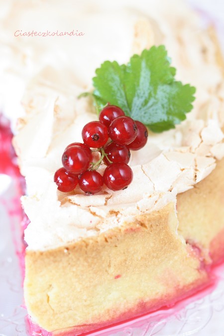 Kwaśne porzeczki podane na najzwyklejszym, słodkim kruchym cieście, a na tym solidna warstwa puchatej bezy. Kubki smakowe wariują od tego słodko-kwaśnego trio i jego twardo-chrupiąco-miękkiej konsystencji.