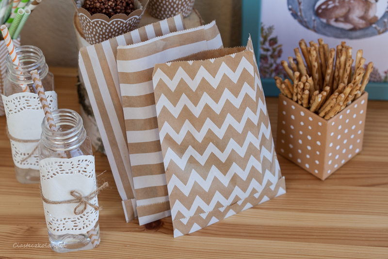 Dekoracje: girlanda, balony, talerzyki, serwetki, papilotki na szyszki i żelki, rurki, świeczka: jak zawsze Partymika (klik)
