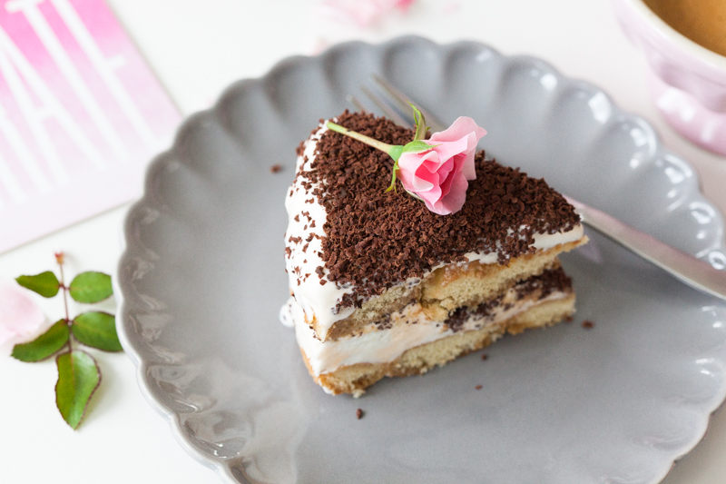 Ten lodowy torcik zainspirowanym jest deserem tiramisu właśnie. Nasączone kawą, Marsalą i likierem kawowym biszkopty, zamiast kremem z mascarpone, żółtek i ubitych białek przełożone są lodami waniliowymi. Idealne deser na upalne dni. Dużo szybszy w wykonaniu od klasycznego tiramisu, a nie mniej efektowny. Podałam go do popołudniowej kawy w 10 rocznicę naszego ślubu.