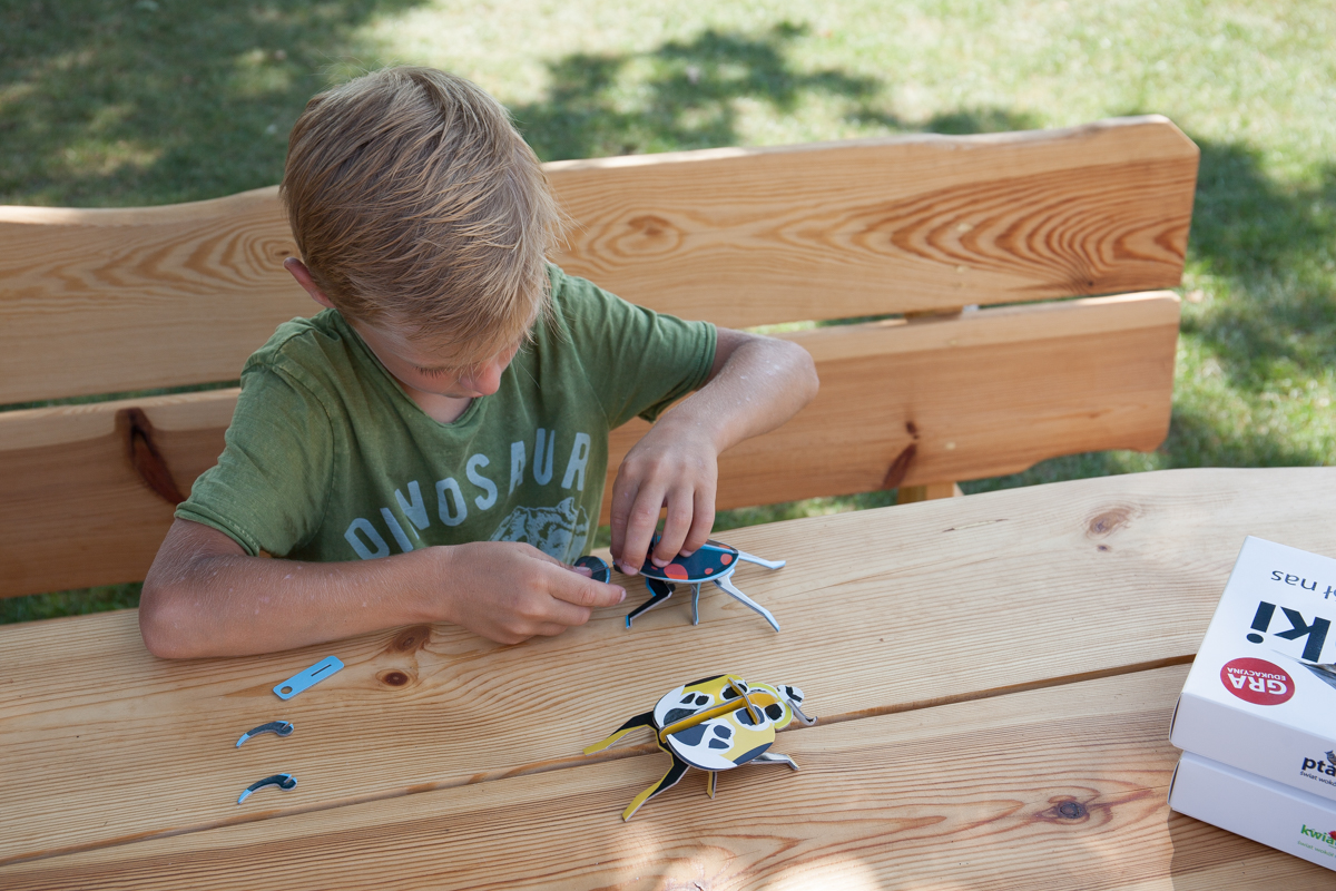 To z kolei tekturowe robaki, które dziecko samodzielnie, według instrukcji składa. Gruba solidna tektura, gwarancja fajnej zabawy oraz estetyczna rzecz na biurku czy komodzie. Antek ma owady biedronkowate, ale w ofercie jest kilka innych.